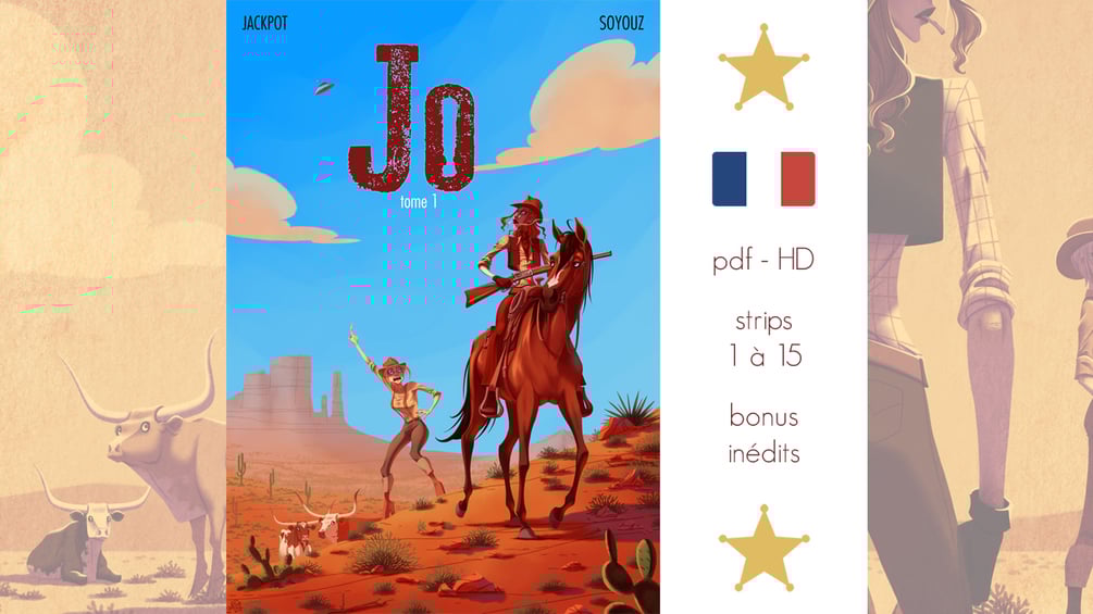 PDF haute définition des volumes papier de Jo (le meilleur webcomic de l'internet) rassemblant chacun 15 strips du webcomic agrémentés de bonus inédits.